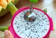 A cleverly-designed fruit-prep tool that can effortlessly transform your ordinary fruit platter into delectable gourmet creations. Featuring 4 precision tools from large scooper, carving knife, seed remover, and a small melon baller all combined in 1 compact, stackable design. This innovative kitchen essential ensures that you can scoop, carve, dig, and serve with ease while unlocking your culinary creativity. Perfect for preparing melons, watermelons, cantaloupe, kiwi, dragon fruit, papaya, mangoes, and even for ice cream, soft cheeses, and more. A universal fruit maestro crafted to delight guests and encourage kids to enjoy healthy snacking at festive celebrations, fun picnics, bento lunches, and more.